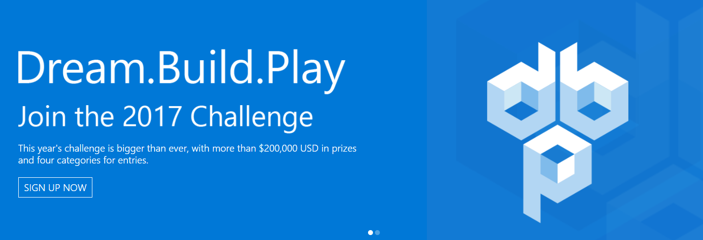 マイクロソフト、ゲーム開発者向けコンテスト「Dream, Build, Play」開催中。Xbox One Creators Program向けも by igjd · 公開済み 2017年10月19日 · 更新済み 2020年5月6日 https://developer.microsoft.com/en-us/windows/projects/campaigns/dream-build-play-challenge MSのサーバーサービスを使ったゲーム、PCゲーム、MRゲーム、コンソールゲーム(Xbox One UWP)の4部門です。 しめきりは2017年12月31日。 Console game部門はXbox One向けにUWPゲームを開発した人にGrand Prize: $25,000 USDが進呈されます。 関連